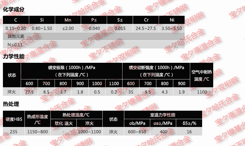 上海宝夕实业—X15CrNiSi25-4材质单,上海宝夕实业—X15CrNiSi25-4成分表,上海宝夕实业—X15CrNiSi25-4是什么材料