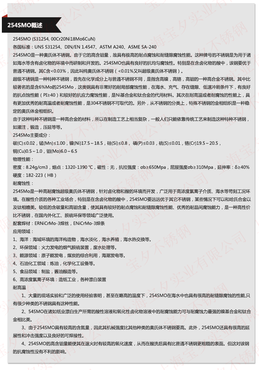 上海宝夕实业—254SMO材质单,上海宝夕实业—254SMO成分表,上海宝夕实业—254SMO是什么材料