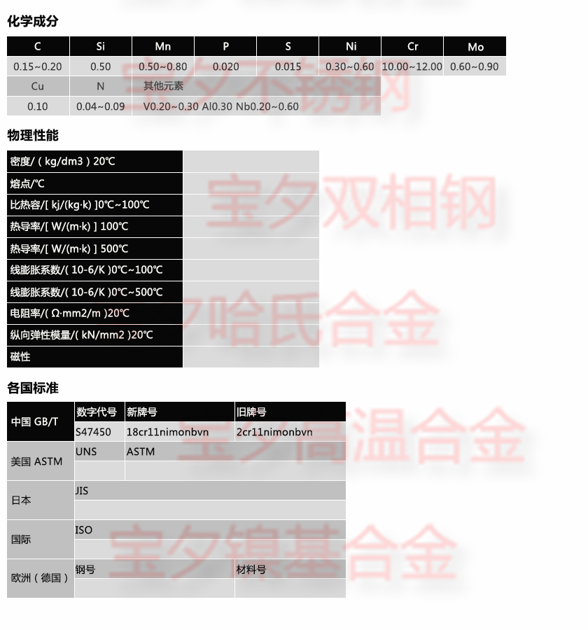 上海宝夕实业—18Cr11NiMoNbVN材质单,上海宝夕实业—18Cr11NiMoNbVN成分表,上海宝夕实业—18Cr11NiMoNbVN是什么材料