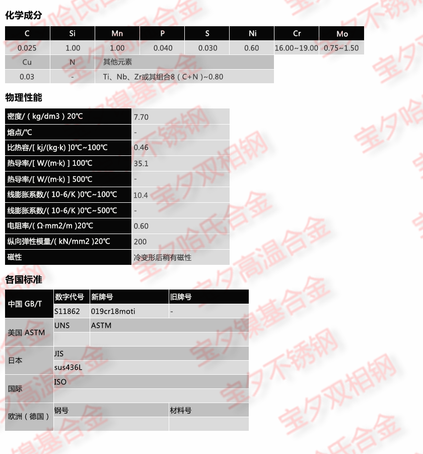 产 地:太钢、武钢等宝钢,太钢,新日铁,日本冶金,蒂森克虏伯,奥托昆普,日本神户
